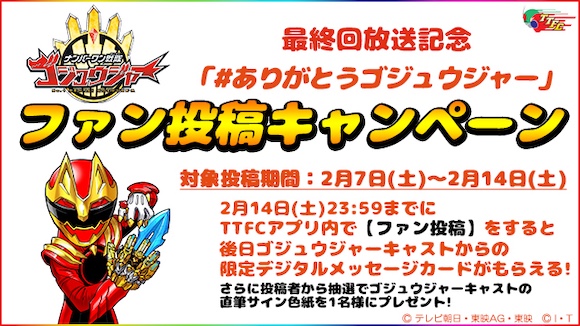 最終回放送記念「#ありがとうゴジュウジャー」投稿キャンペーン実施中!!