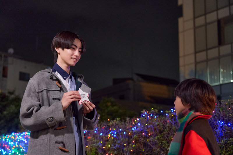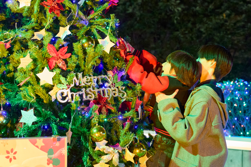 そこには、街に飾られたツリーに願い事を飾ろうとする2人の姿が。